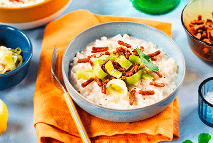 Remplissez au premier tiers avec la fondue de poireaux au tofu et disposez les lamelles de la première St Jacques en rosaces. Ajoutez encore un tiers de poireaux au tofu et terminez avec la deuxième St Jacques en rosace sur le dessus