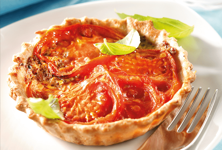 Remplissez les moules, décorez de moitiés de tomates cerises et saupoudrez de levure diététique