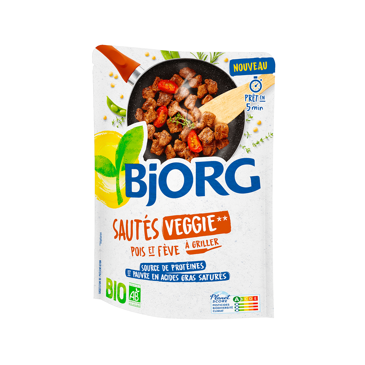 Faire rissoler les sautés veggie Bjorg dans une poêle chaude avec un filet d’huile d’olive.