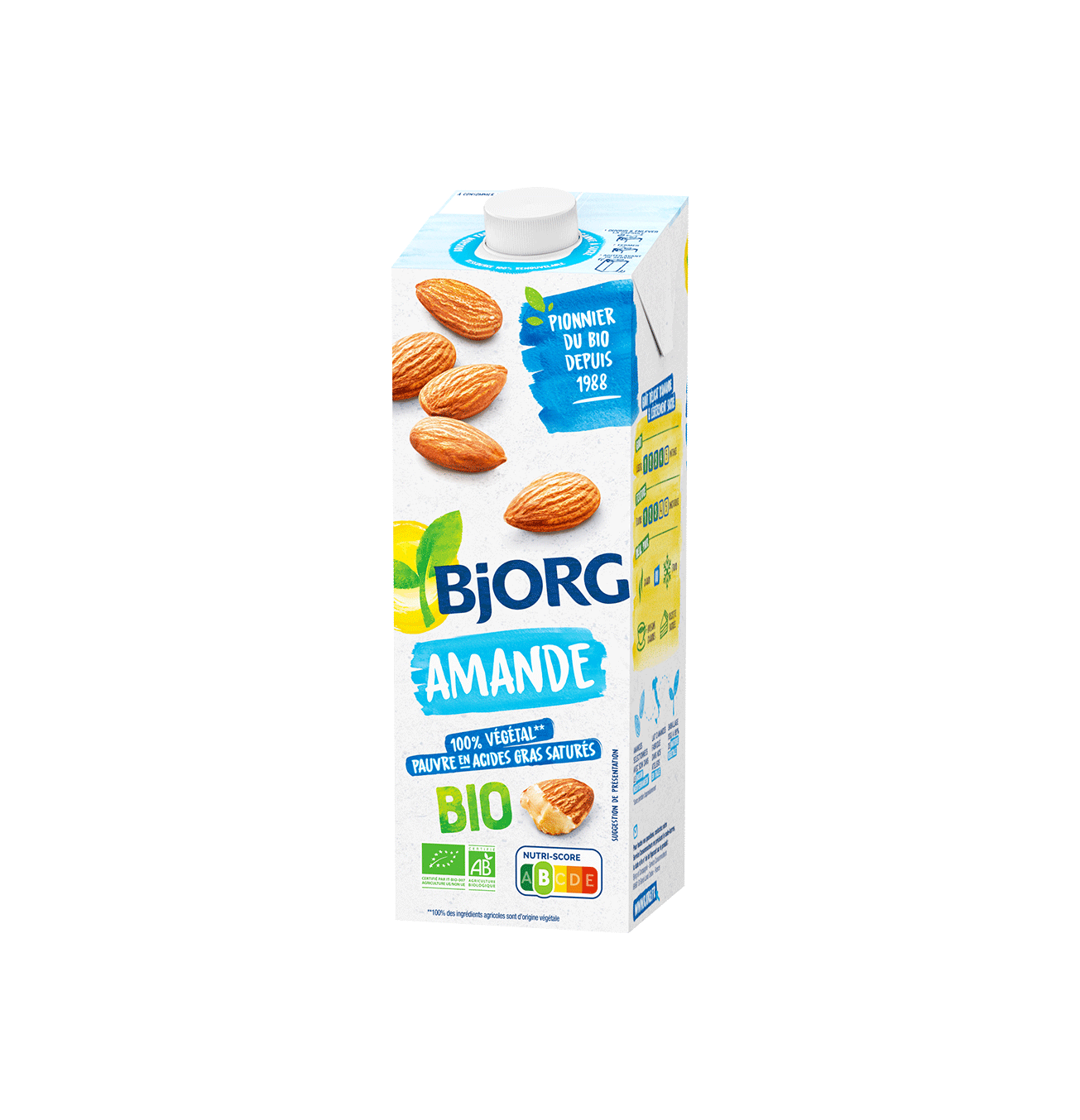 Placer ensuite dans le blender les framboises, une banane et le reste de boisson végétale amande Bjorg. Mixer !