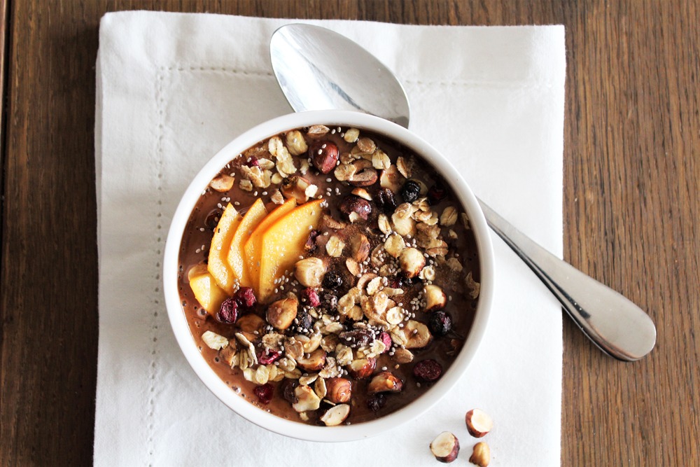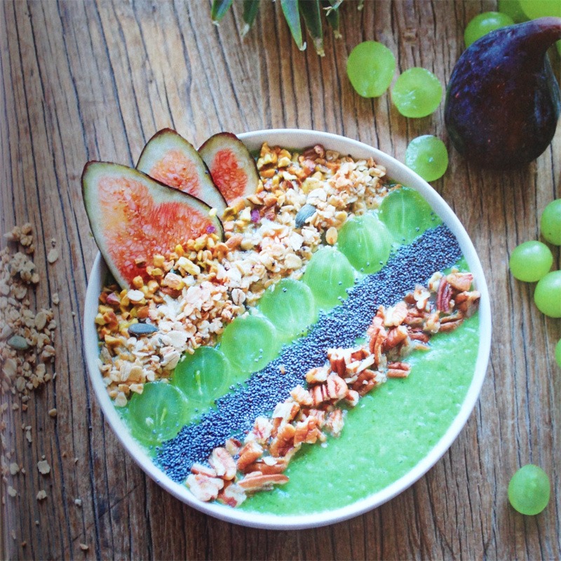 Verser les deux préparations de smoothies dans des bols, parsemer de Muesli super fruits Bjorg et agrémenter de quelques jolis fruits frais